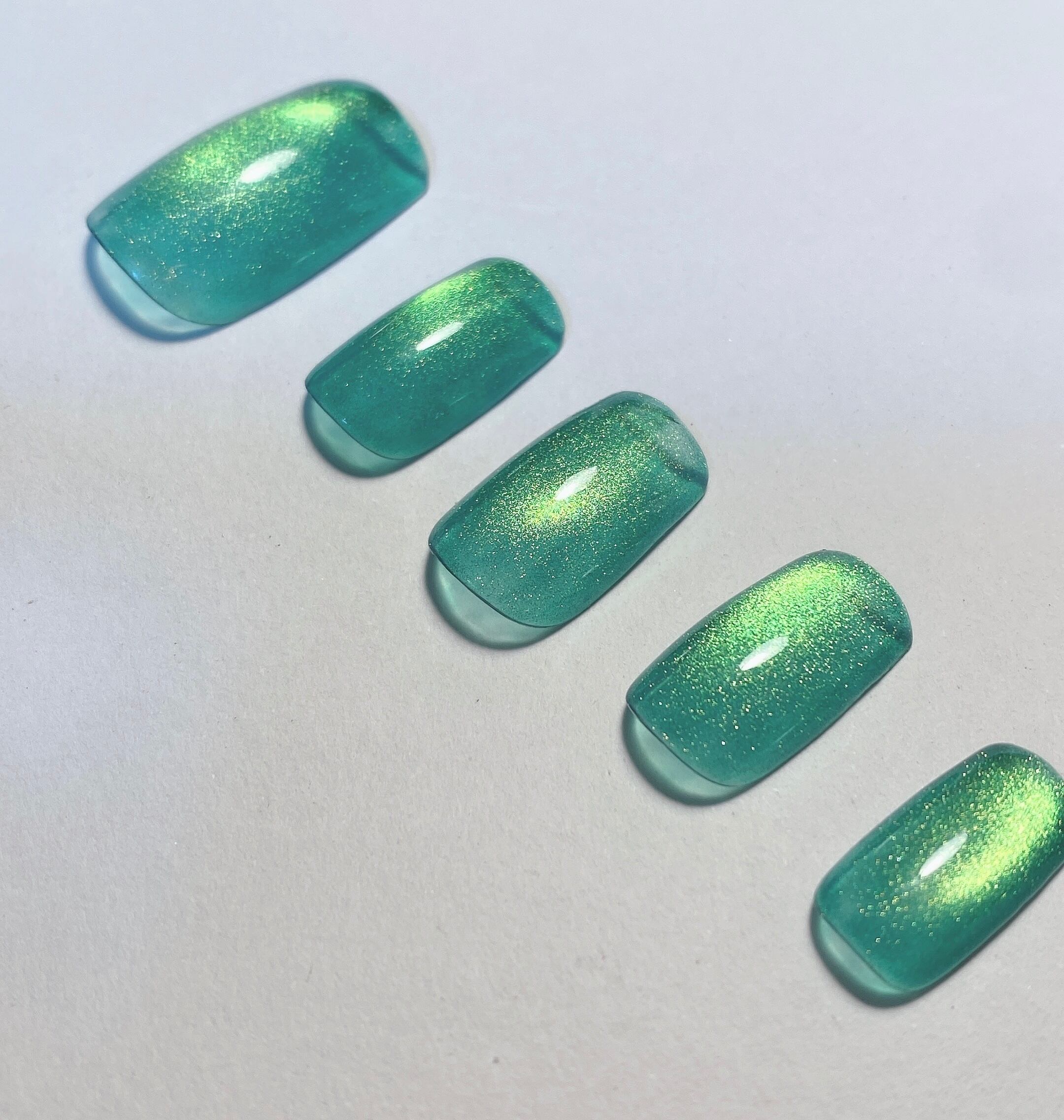 ハンドメイドのマグネットジェルネイル 10本セットです。ミニ爪やすりと、強力粘着テープも付属していますので、すぐにご使用頂けます。