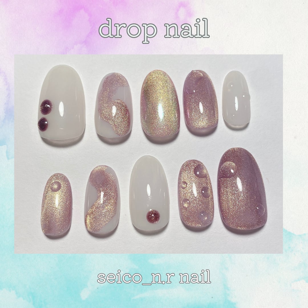 ハンドメイドのドロップジェルネイル10本セットです。ミニ爪やすりと、強力粘着テープも付属していますので、すぐにご使用頂けます。