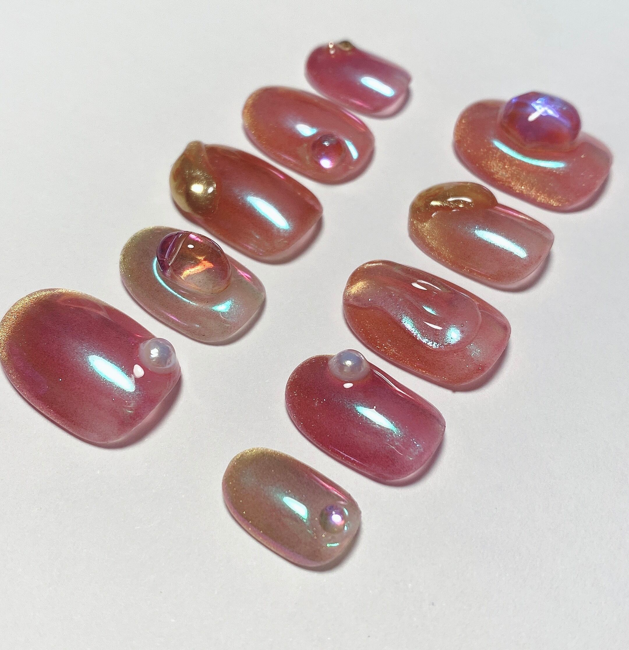 ハンドメイドのニュアンスネイルチップ10本セットです。ミニ爪やすりと、強力粘着テープも付属していますので、すぐにご使用頂けます。