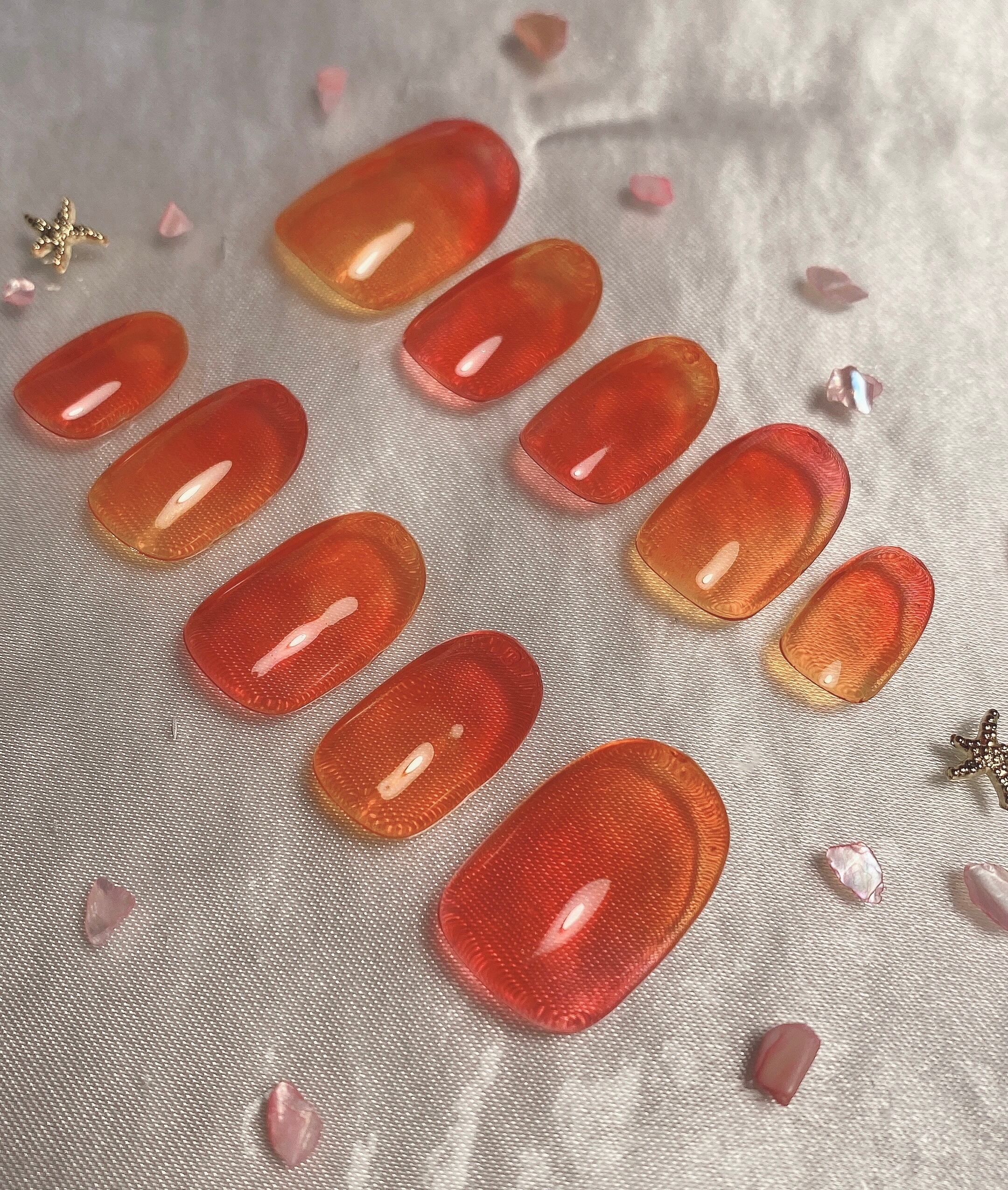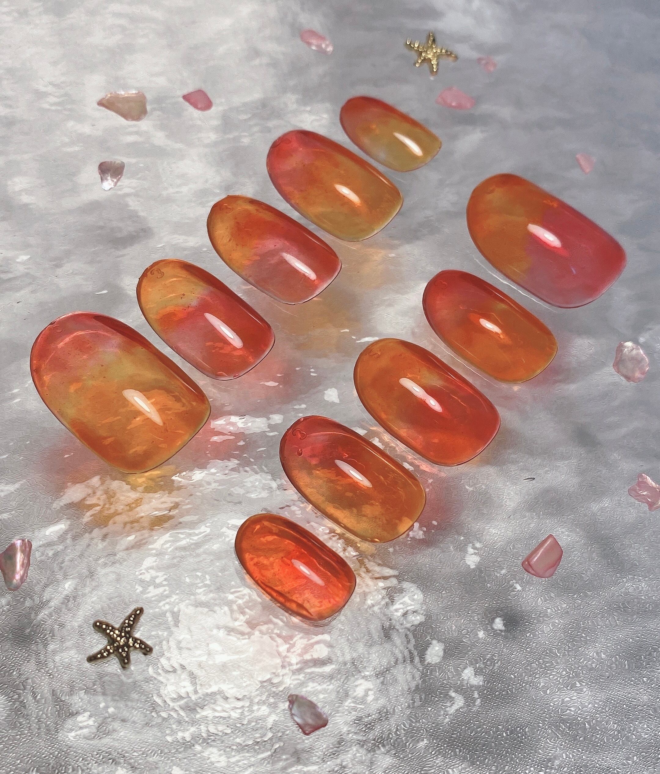 ハンドメイドのシロップネイルチップ10本セットです。ミニ爪やすり、強力粘着テープも付属していますので、すぐにご使用頂けます。